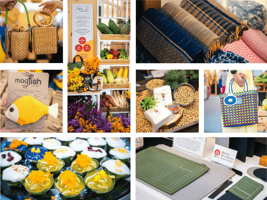 Central Group gathers good products for Thai consumers, such as OTOP products, products made from water hyacinth, Muen Sri hand-woven cloth from Trang, Tai Lue hand-woven cloth from Nan, 100% organic salted eggs, chemical-free melons, pork rind and Northern green chili dip from Chiang Mai, Good Goods; chic design products by Thai people, and and many other products.